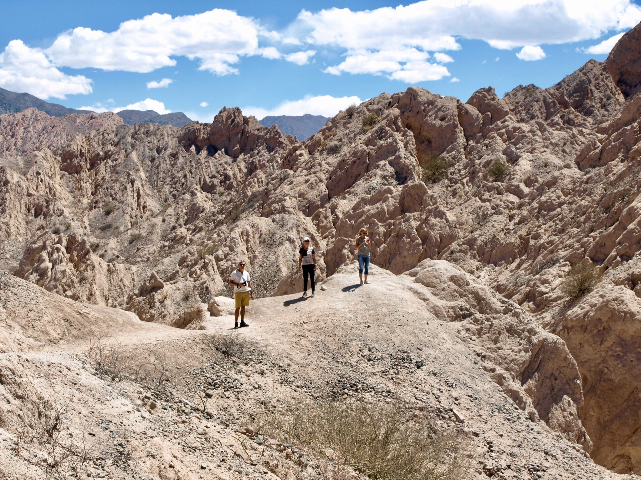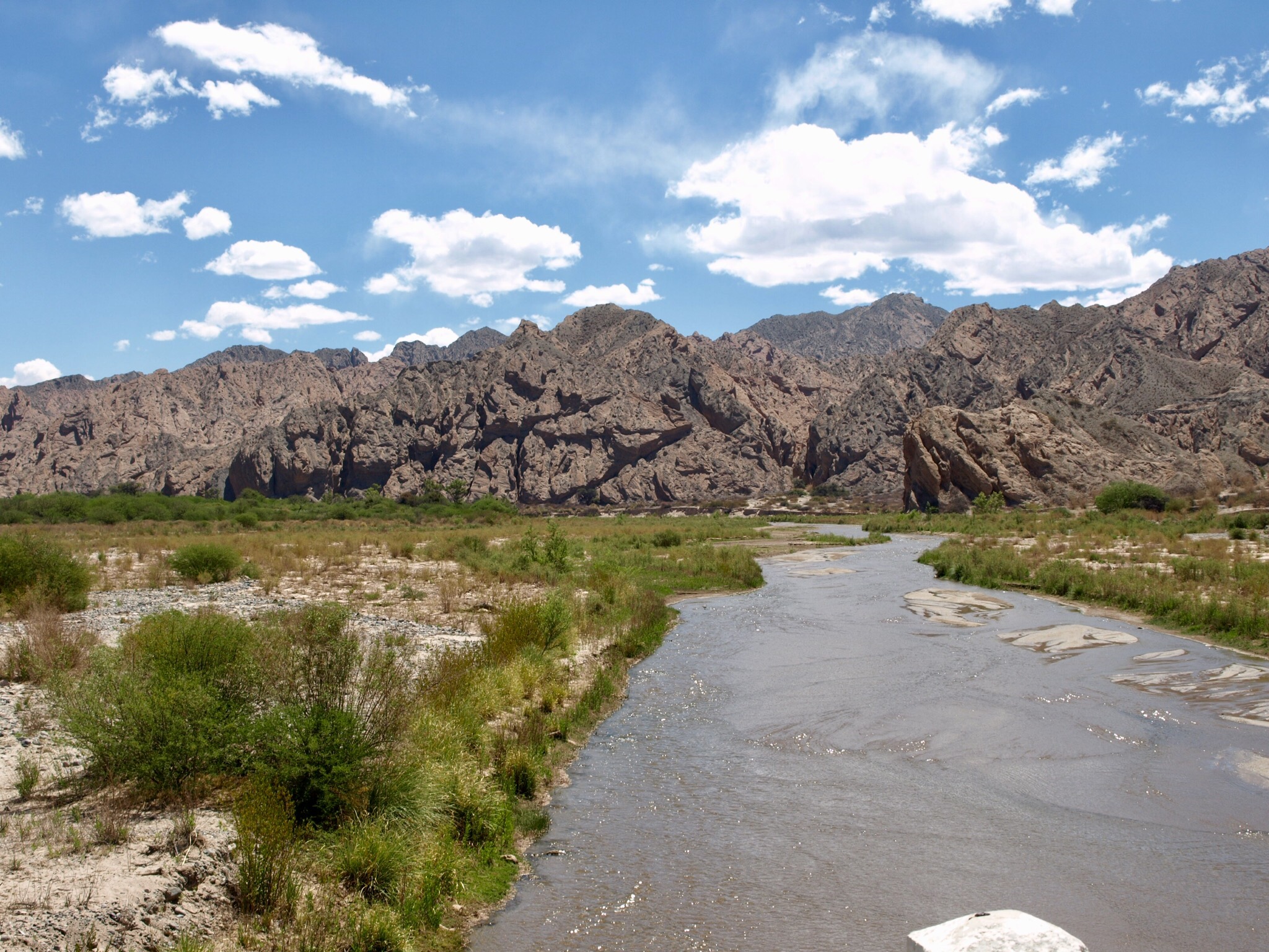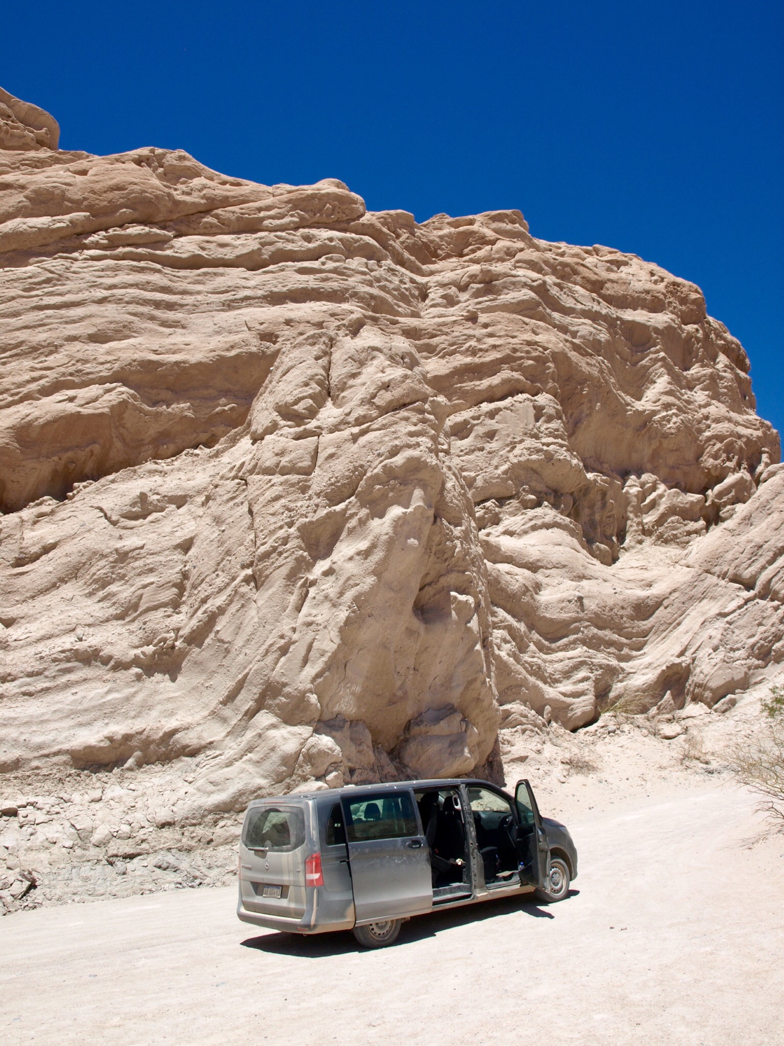 137 km de piste aujourd’hui sur la célèbre Ruta 40 qui parcourt l’Argentine du nord au sud ! Nous nous attendions au pire, mais, finalement, elle était plus roulante que l’ex 40, bien que plus sinueuse. Le parcours est magnifique, traversant plusieurs Quebradas, et suivant le lit du Rio Calchaqui. Il ne faut pas s’attendre à faire plus de 40-50 km/h de moyenne, bien sûr. Nous avons encore avalé pas mal de poussière, mais nous y sommes habitués maintenant. Nous faisons étape pour 2 nuits à Cafayate, ville entourée de vignoble, que nous allons découvrir.