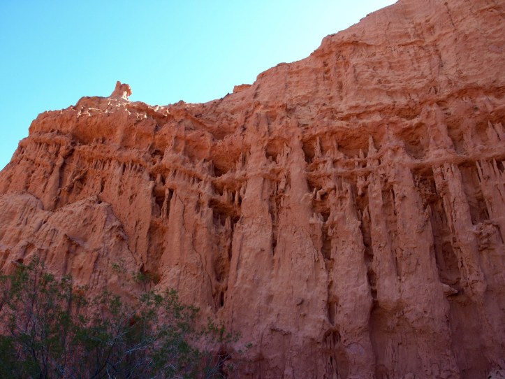 Dernière découverte aujourd’hui, en remontant vers Salta : la Quebrada de las Conchas, succession de roches rouges aux formes bizarres, qui nous rappellent l’ouest américain. Toute la première partie de la route est donc l’occasion d’arrêts multiples pour admirer ces roches sculptées par l’érosion, sous une forte chaleur (35°C).