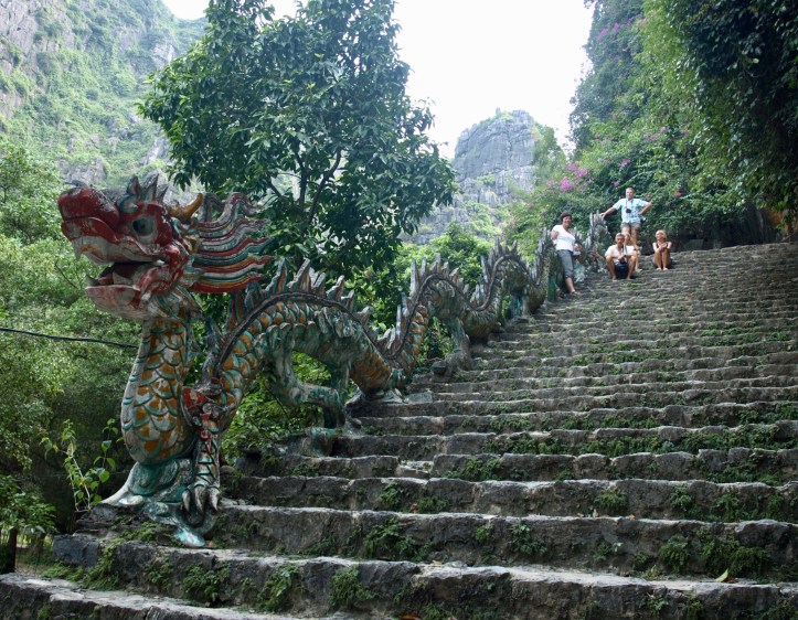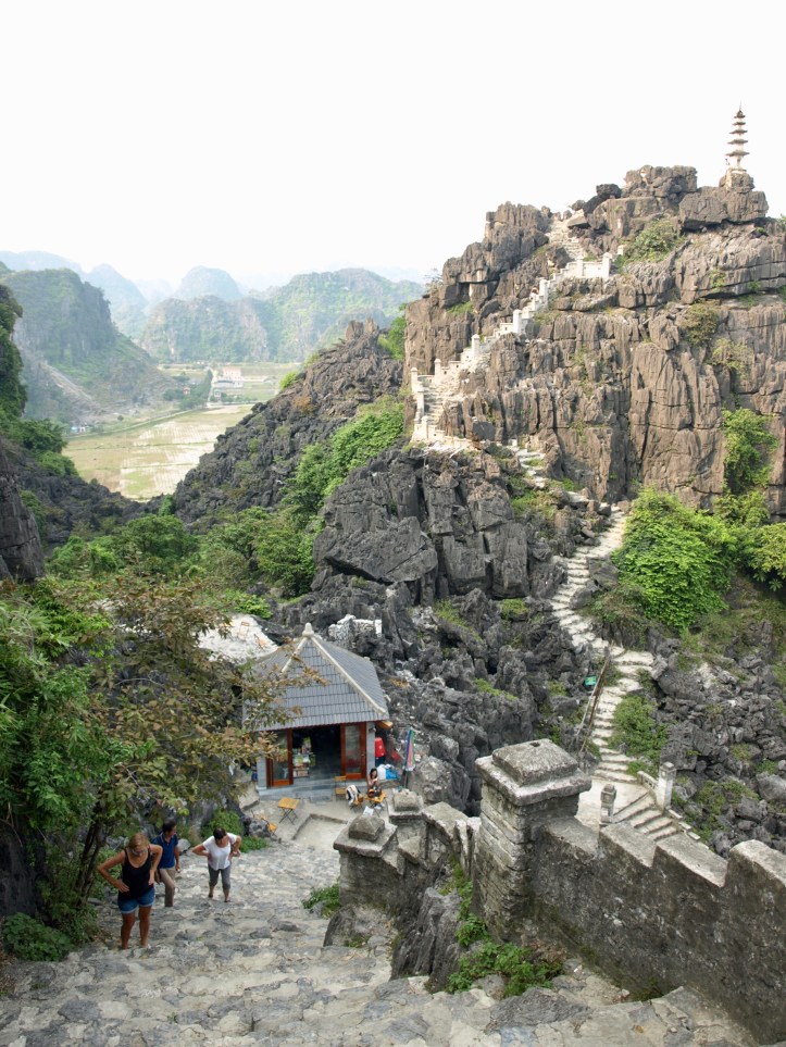 Visite ensuite du petit temple de Thai Vi, et des pagodes de Jade. L’après-midi, nous allons à Hang Mua, sommet d’un pain de sucre, avec une statue de la Vierge, qu’on atteint après avoir gravi 450 marches bien raides. Mais la vue sur les rizières est splendide et vaut bien cette ascension.
