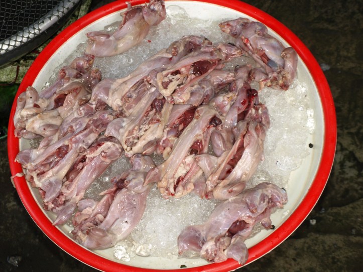 Et encore un marché où les grenouilles dépecées vivantes côtoient les rats des rizières et les crabes … bon appétit !