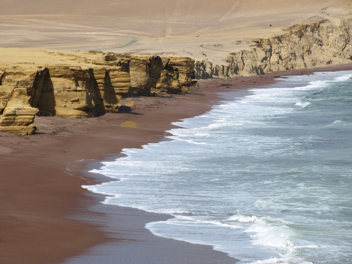 Nous sommes arrivés à Paracas en fin de matinée, et, après un déjeuner de poisson sur le port, nous sommes partis visiter la réserve qui s’étend sur 335000 ha désertiques. Le paysage est lunaire avec des plages de sable rouge et des falaises abruptes. Classée depuis 1975, cette réserve est préservée, et le site superbe.