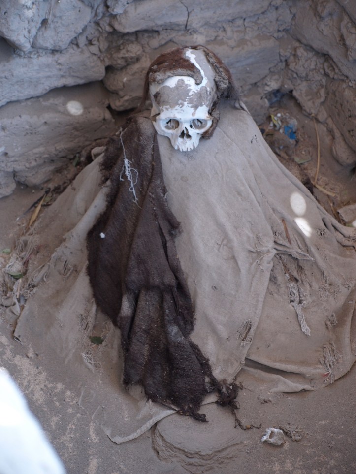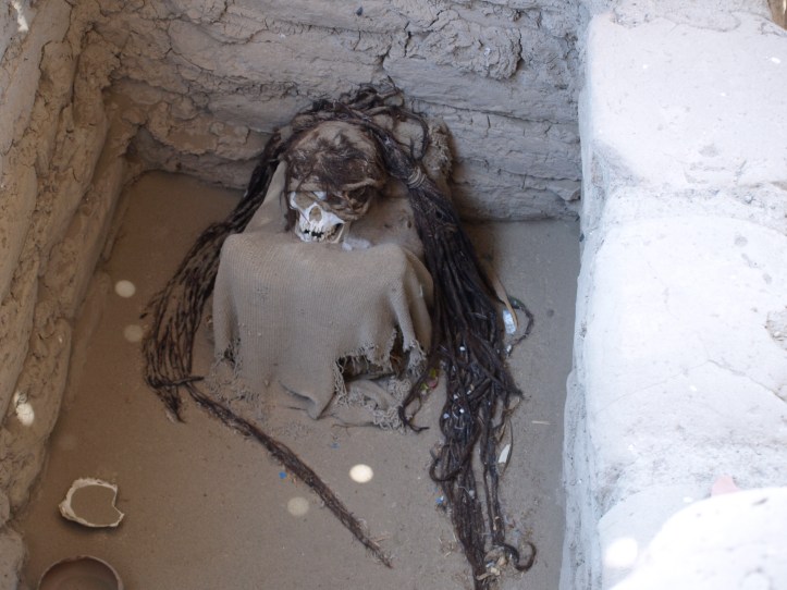C’est un cimetière pré-inca, visité pour la première fois en 1901, qui fut ensuite beaucoup pillé puis restauré en partie depuis une trentaine d’années. On y observe ainsi une douzaine de tombes occupées par des momies d’adultes et d’enfants nazcas, waris, et icachinchas, certaines pourvues de chevelures de 2 m de long.