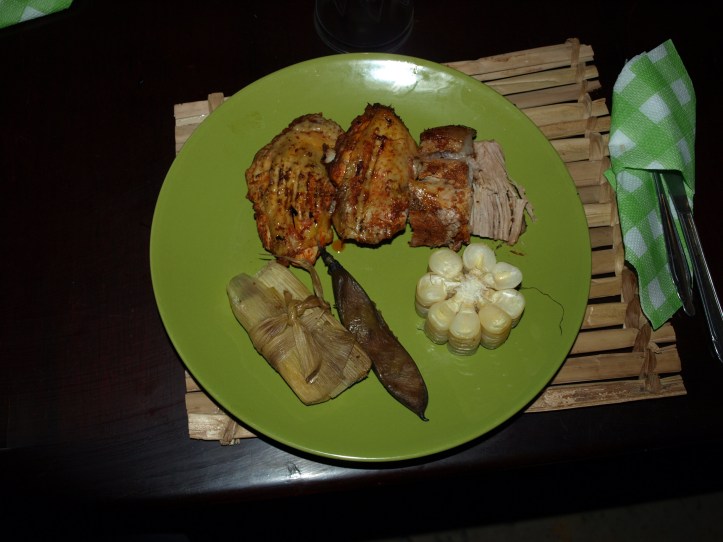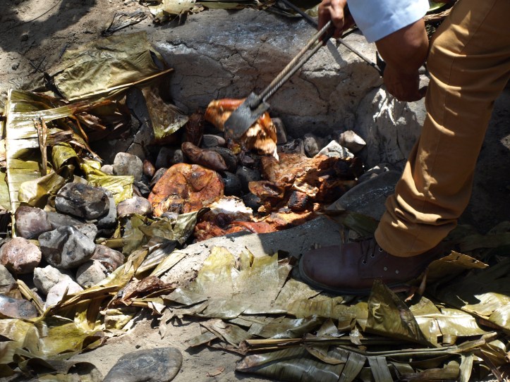 Pour le déjeuner, nous avons partagé un plat de fête péruvien avec un groupe de québécois, le pacha manca, composé de porc, poulet et légumes cuits dans la terre sous des pierres chauffées au préalable. Nous nous sommes régalés.