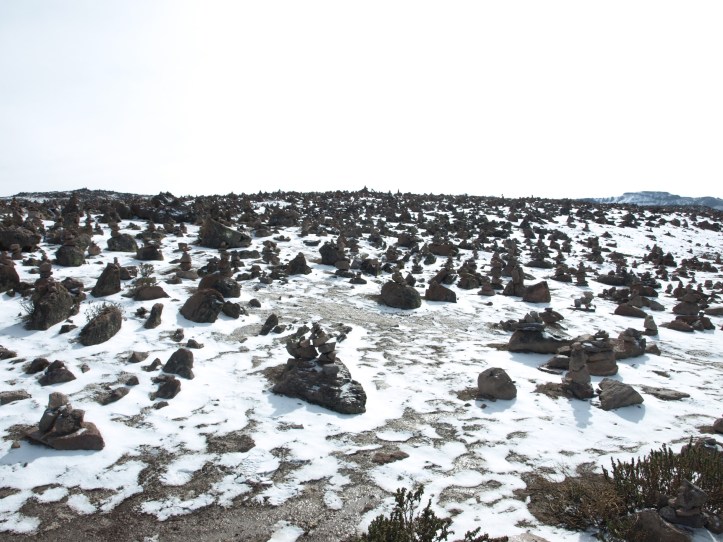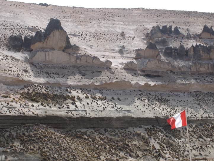 Nous quittons le Canyon d’El Colca, et également notre dynamique guide Jessica, après un arrêt au col de Patapampa, à 4910 m d’altitude. Il a neigé, ce qui fait un paysage différent de l’aller.