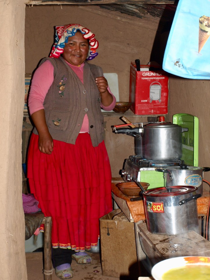 Nous allons ensuite découvrir nos logements chez l’habitant pour 2 jours, à Llachon, sur la presqu’île de Capachica, au bord du lac Titicaca. Nous voulions de l’authenticité, nous ne sommes pas déçus ! Nous sommes logés dans 3 familles différentes, dans des chambres en terre, et dînons avec nos hôtes, ce qui nous permet de découvrir un peu leur mode de vie, bien éloigné du nôtre. C’est dommage que nous ne parlions que quelques mots d’Espagnol, car il est difficile de communiquer malgré des efforts réciproques.