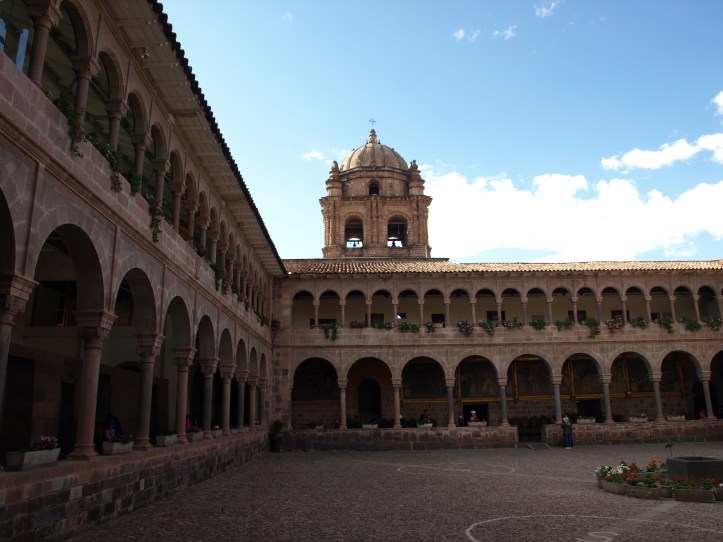 Nous arrivons enfin à Cuzco, où nous sommes accueillis par Edgard, le dirigeant de notre agence locale (Pérou Voyages Passion). Nous partageons avec lui un petit pique-nique, puis il nous guide dans Cuzco pour voir les principales curiosités de cette ville influencée par l’occupation espagnole, et notamment le cloître Santo Domingo.
