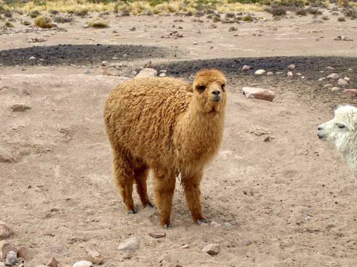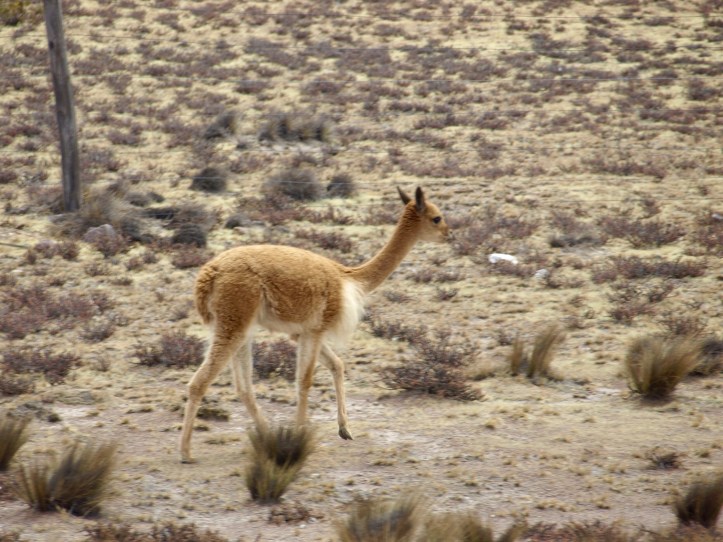 Puis il faut quitter le trafic de la banlieue d’Arequipa, avant de s’élever lentement mais sûrement La route est en très bon état mais chargée de camions (principalement miniers) jusqu’à rejoindre l’Altiplano, où on peut voir de nombreuses vigognes, des lamas et des alpagas.