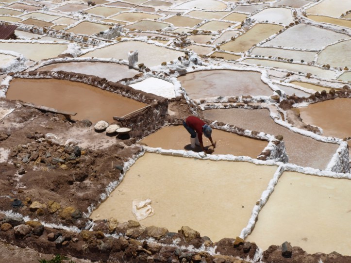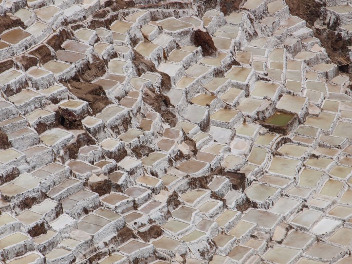Premier jour, la visite le matin des salines de Maras, site étonnant avec ses 3900 bassins en terrasses, emplis de sel en pleine cordillère des Andes. Un Rio salé s’y écoule pour les fournir en eau. Les plus anciens bassins datent d’avant l’époque inca.