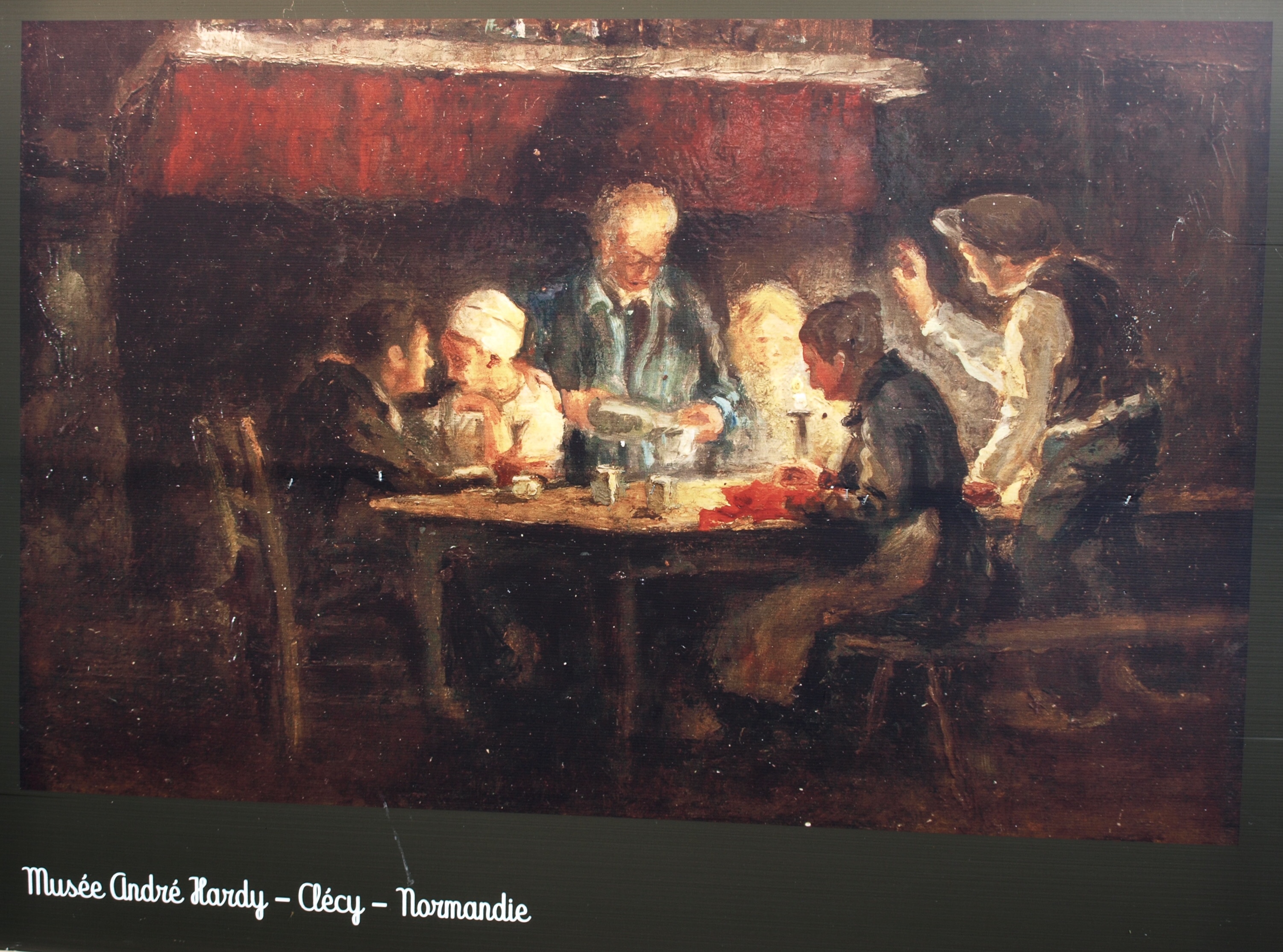 Tôt le matin, nous avions commencé par la visite du village de Clécy. Sur chaque maison d’habitation du centre on peut voir l’histoire du commerce qu’elle abritait autrefois, et qui a aujourd’hui disparu. Dans le village se tenait également une exposition en plein air du peintre impressionniste André Hardy, qui s’est beaucoup inspiré des paysages et scènes de vie de la région.