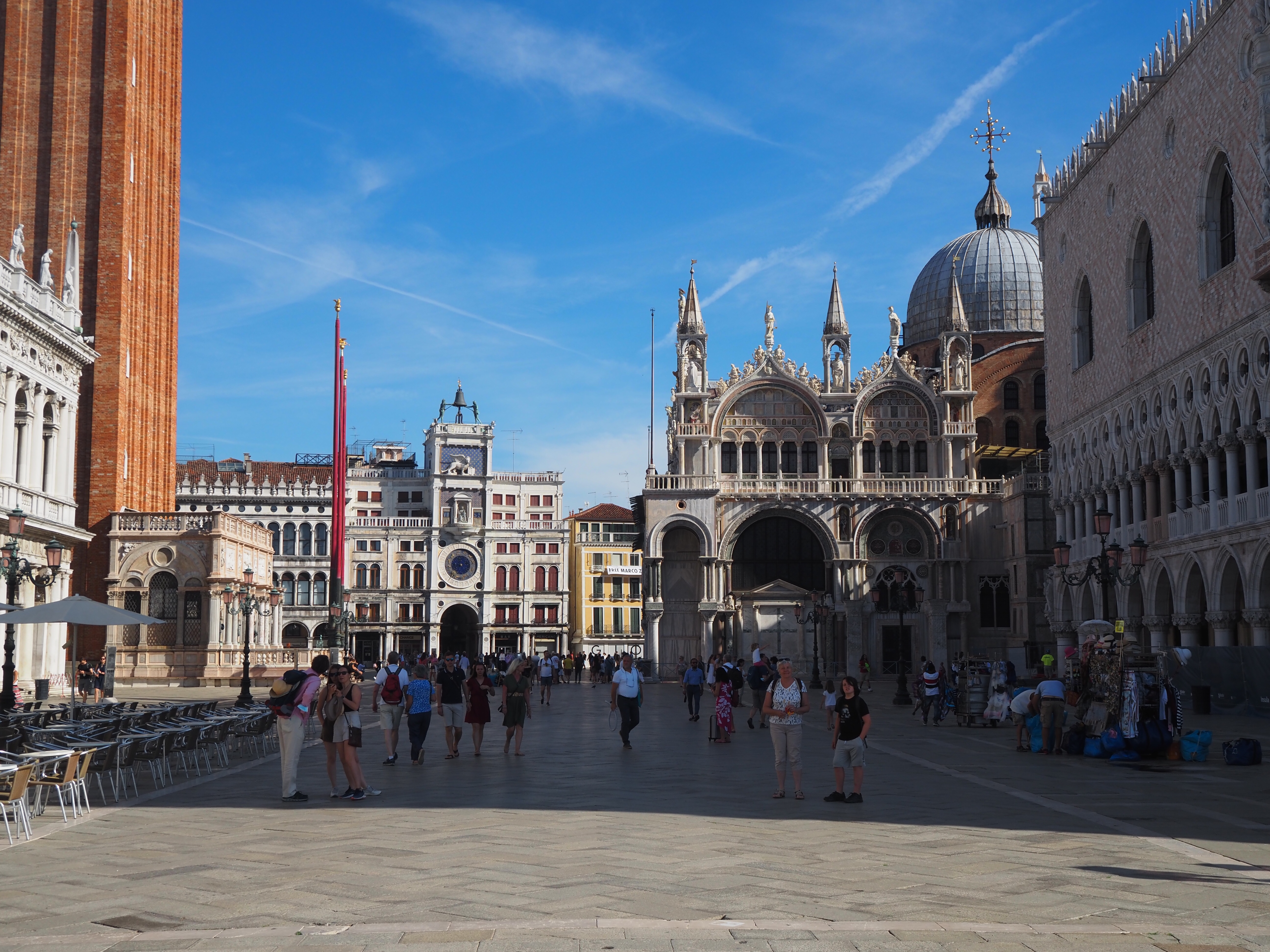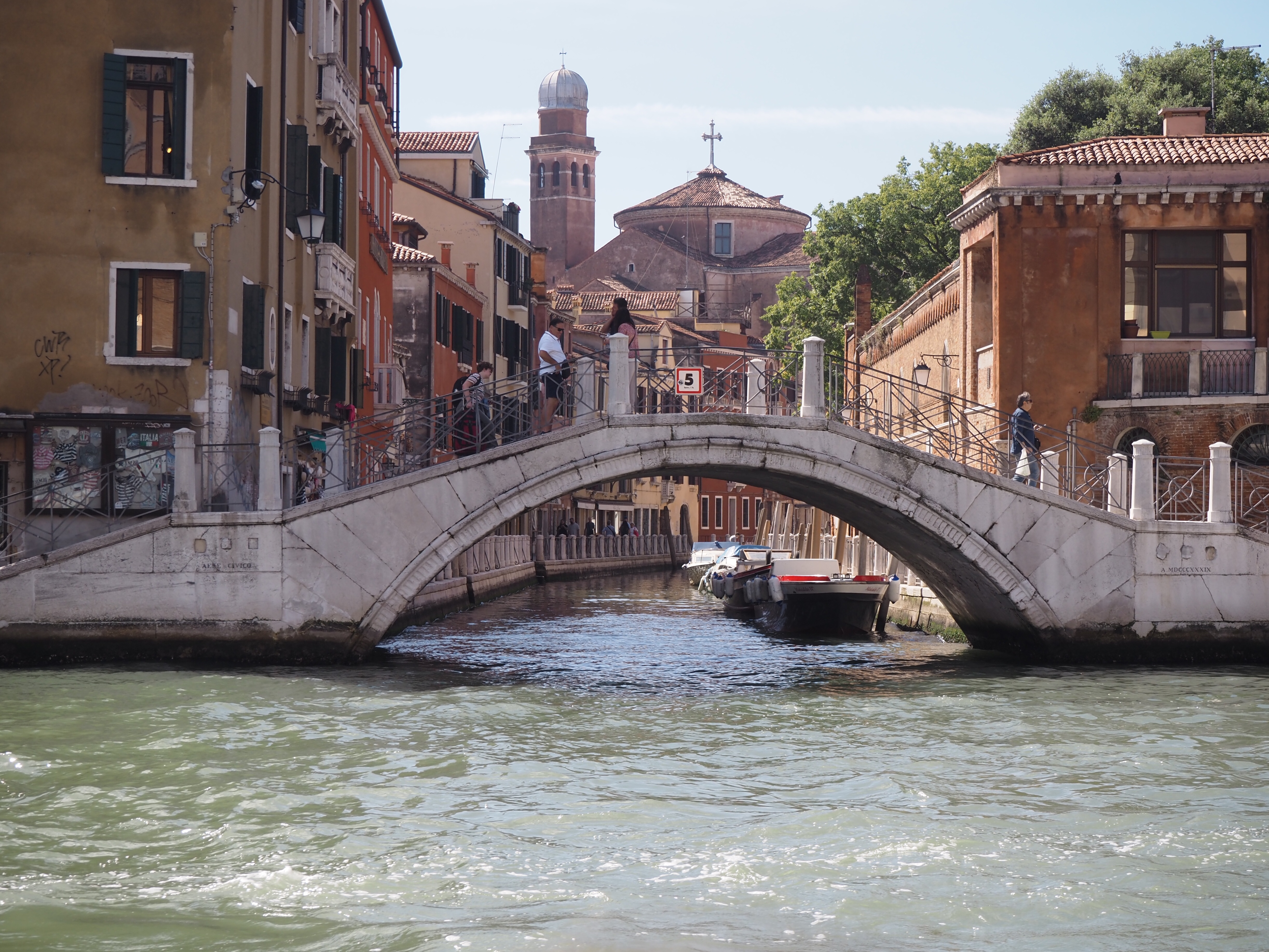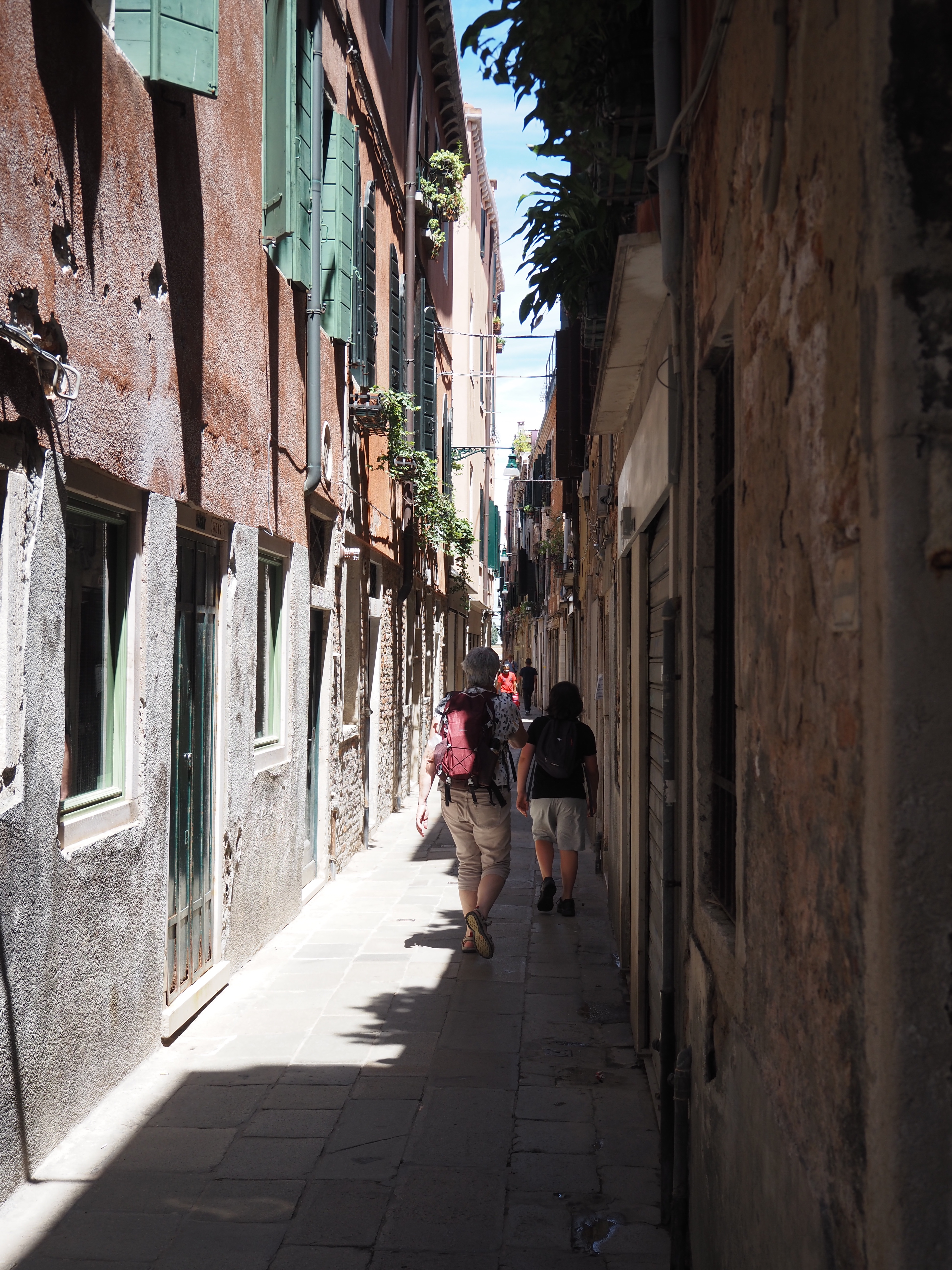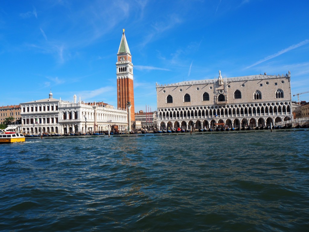 L’objectif est, cette fois, de faire découvrir la ville à notre petit-fils, en une journée. Donc peu de visites, mais surtout sentir l’atmosphère, la vie sur l’eau, comprendre la construction de la ville sur la lagune et l’enjeu de sa préservation. Nous allons donc beaucoup marcher (11 km), mais aussi prendre de nombreuses fois le vaporetto, ou bus sur l’eau.