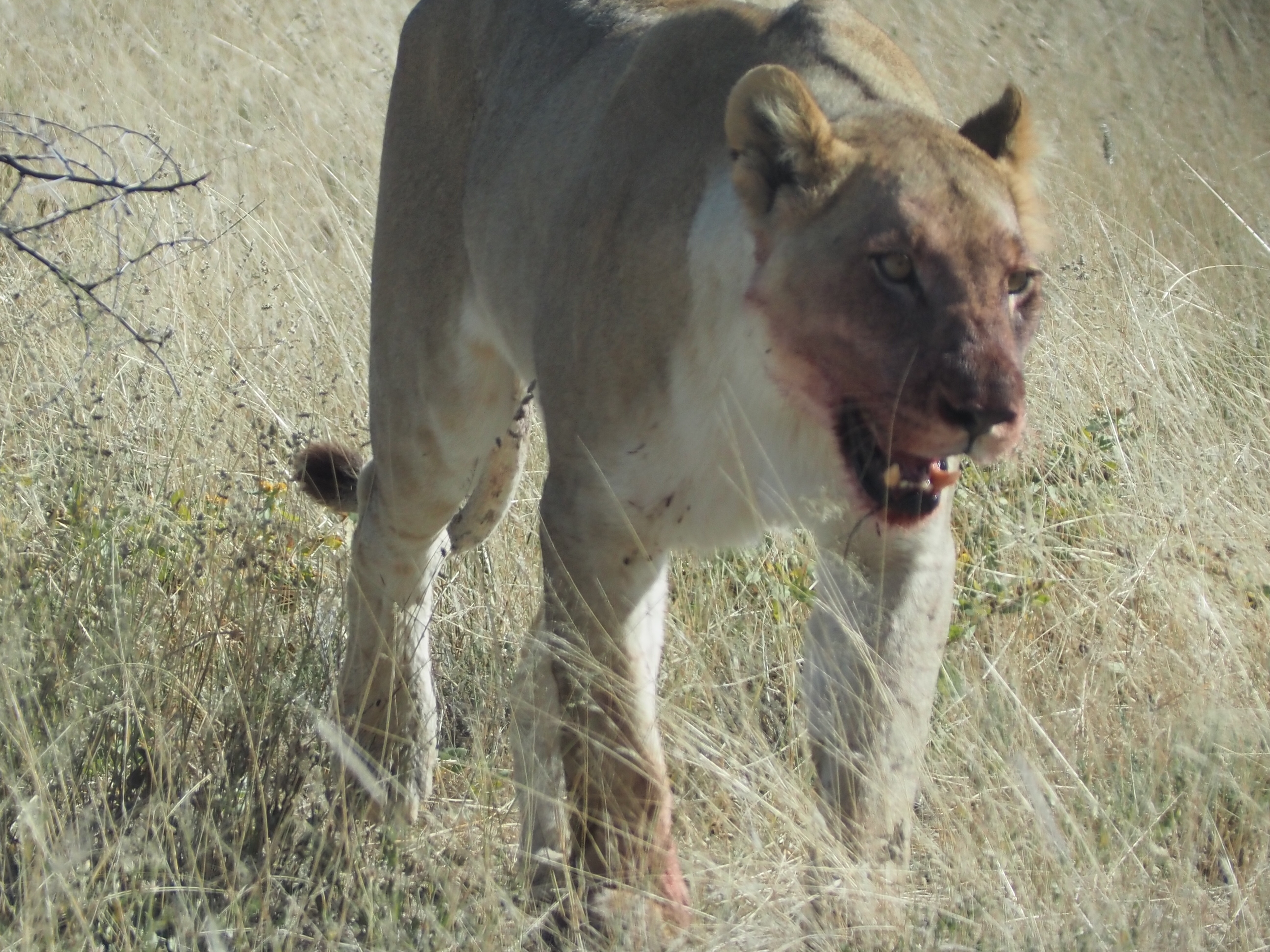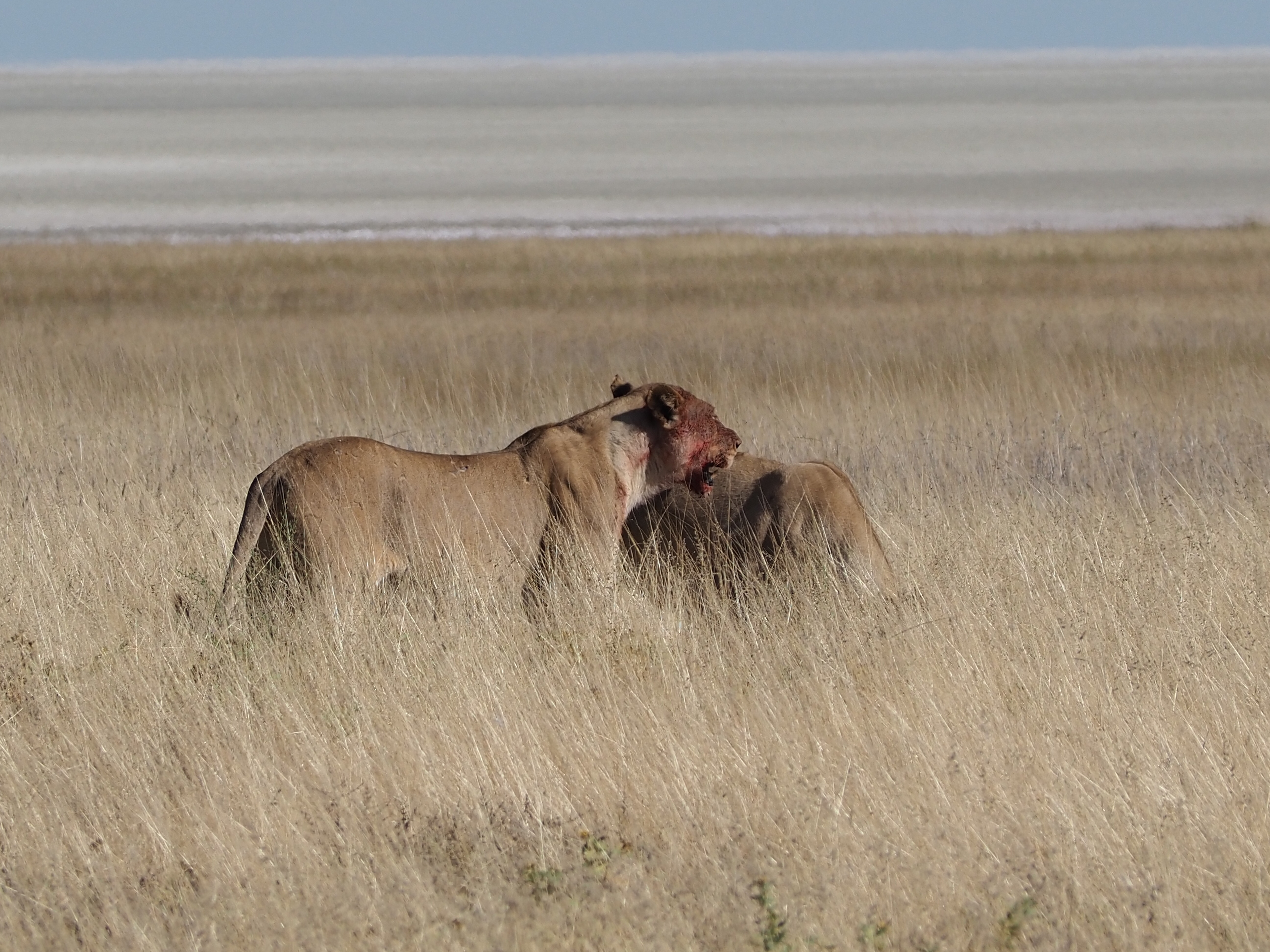 Un peu plus tard, nous assistons au festin de 2 lionnes, après leur chasse du matin : une vraie boucherie !