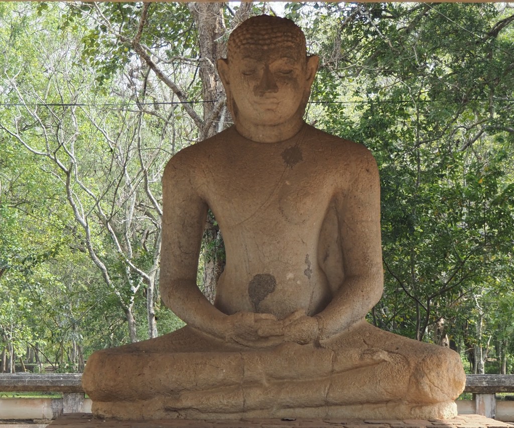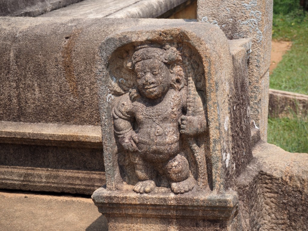 Nous nous attendions à un arbre majestueux en allant vers le « Sri Maha Bodhi « …arbre le plus sacré d’entre tous aux yeux des bouddhistes sri-lankais, mais, pour nous, cette branche soutenue par de hautes béquilles dorées, est assez décevante. C’est une bouture du figuier des pagodes, sous lequel le Bouddha aurait atteint l’illumination, venue d’Inde pour le roi Devanampiya au IIIè s. av. J.C.