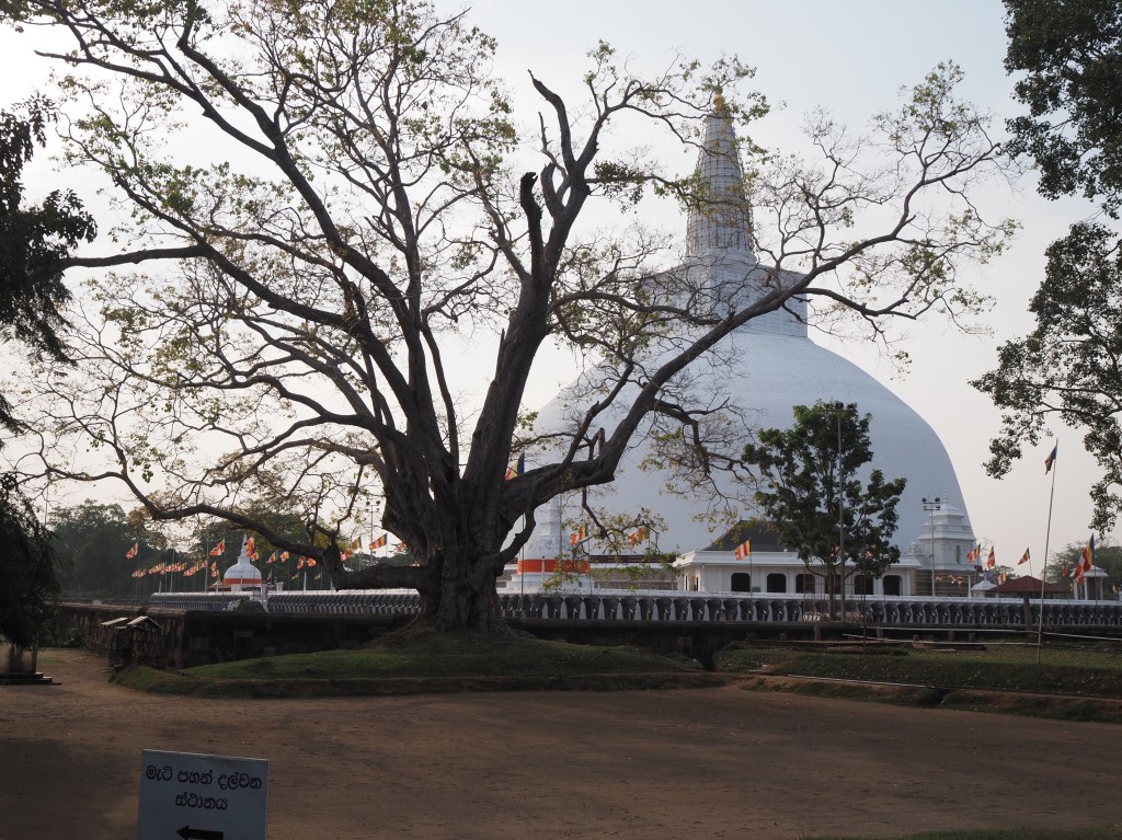 Avant de partir vers le nord de l’île, nous visitons la première cité du « triangle culturel « . Anuradhapura, à mi-chemin entre site archéologique et complexe religieux, est une ancienne capitale du pays (-400 à 993). Ses monuments, dont beaucoup servent encore de lieu de culte, sont éparpillés dans la forêt, le site ayant été abandonné pendant 8 siècles avant d’être remis à jour.