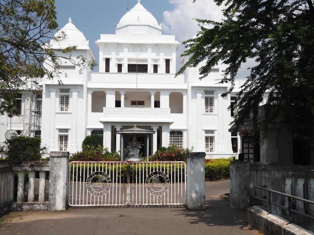 Petit tour à la bibliothèque, monument renommé de Jaffna, qui a été incendiée pendant la guerre civile, et reconstruite à l’identique.