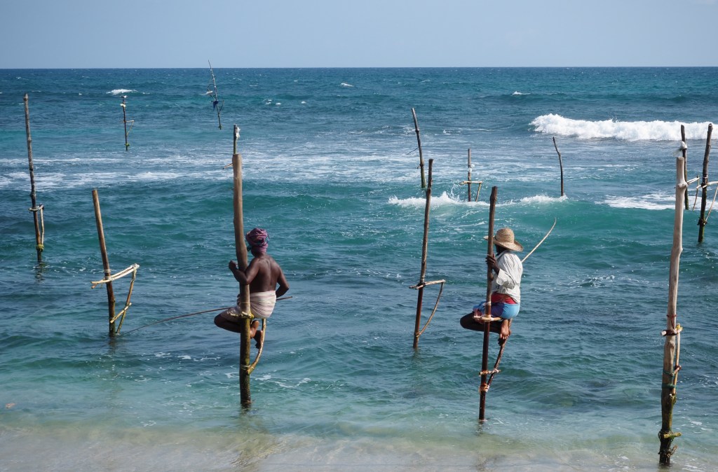 Les pêcheurs ont maintenant des bateaux, mais quelques uns pêchent encore à la perche pour les touristes !