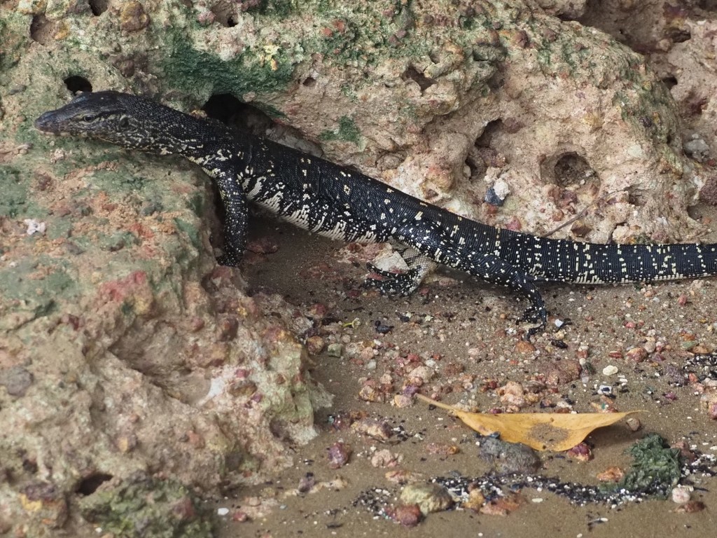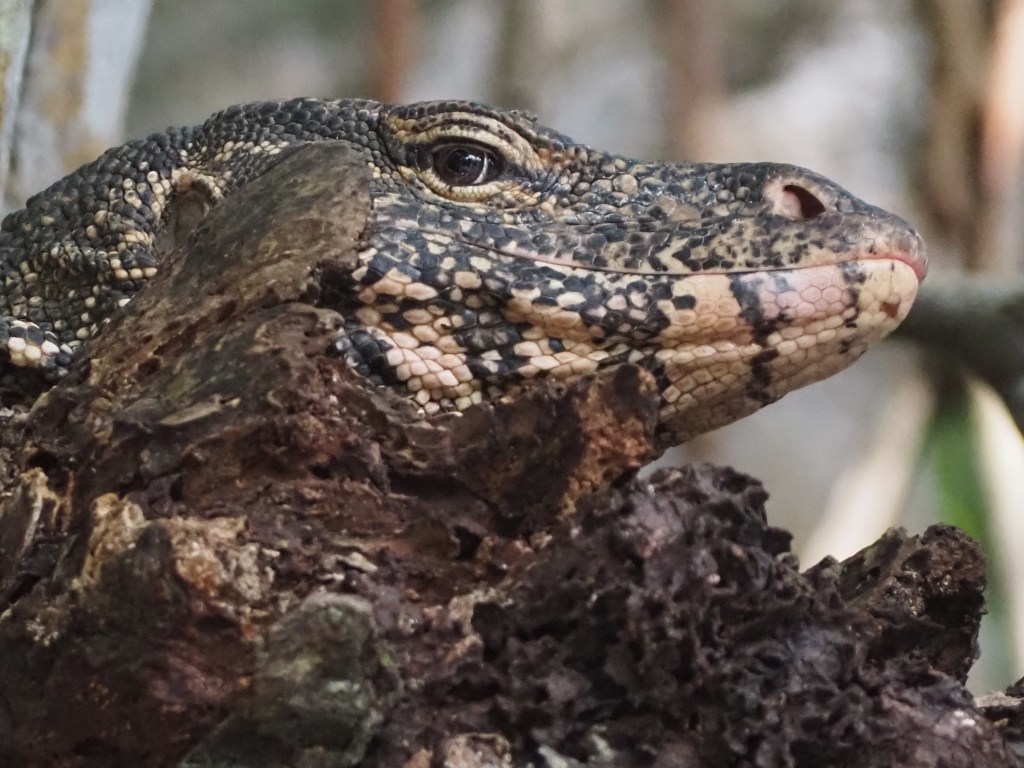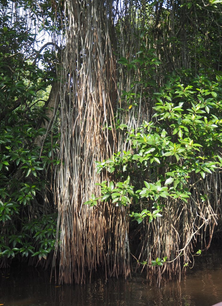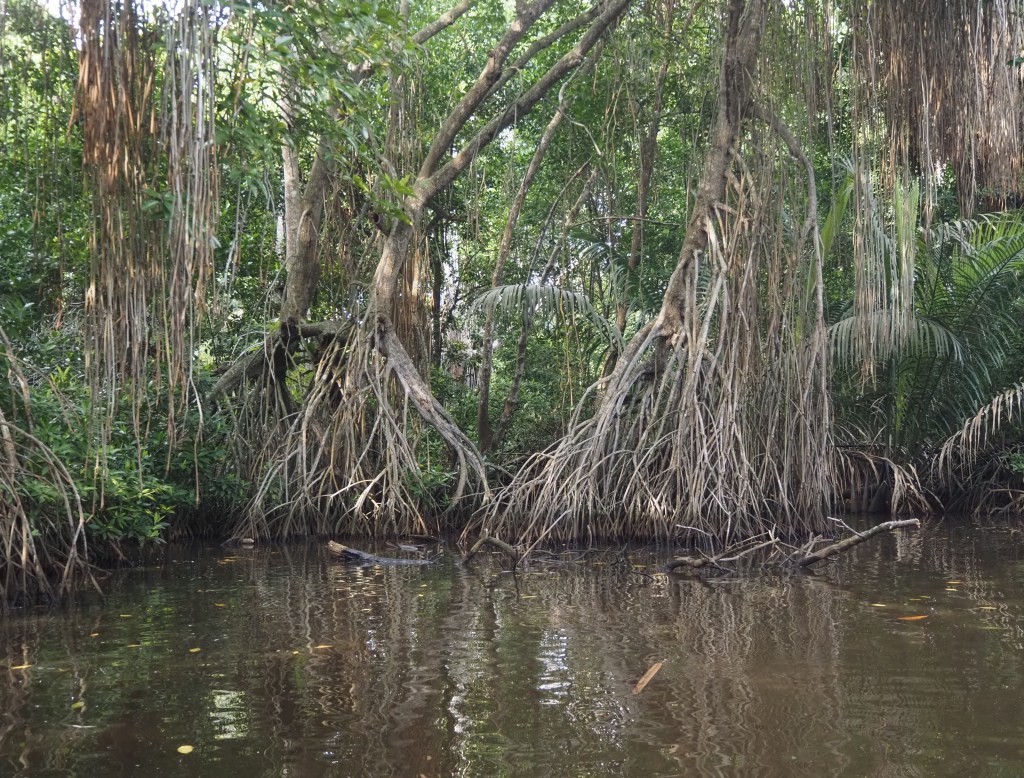 Ensuite, nous partons en bateau pour visiter la mangrove où nous pouvons voir un crocodile, des varans, des singes et des oiseaux de différentes sortes ainsi que des chauves-souris géantes.