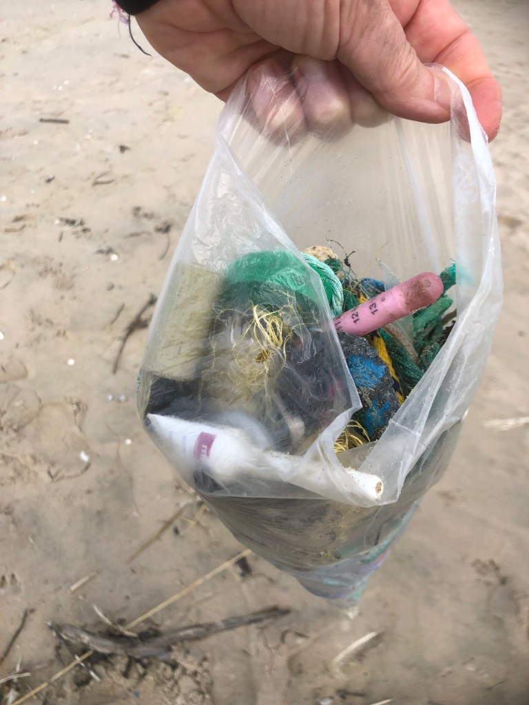 Nous continuons notre remontée, en passant par Le Touquet, et ses superbes maisons, et nous nous arrêtons à Merlimont pour déjeuner et marcher un peu sur la plage, sous le soleil revenu. La municipalité a prévu des caisses pour déposer ce que la marée laisse comme souvenirs « non naturels »…en 10 min, la récolte est malheureusement bonne ! Nous aurions dû prendre un sac plus grand !