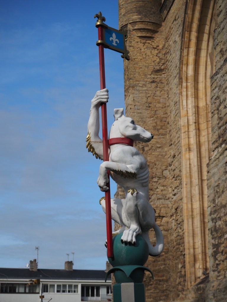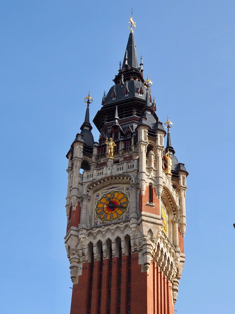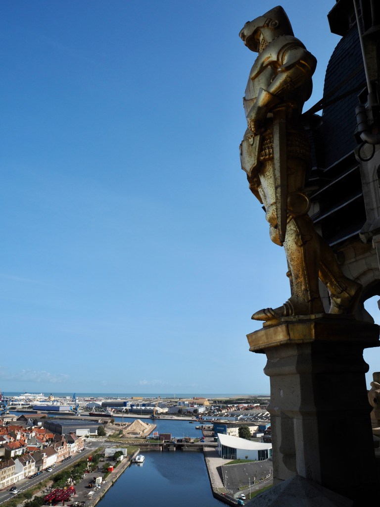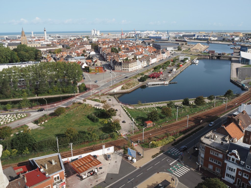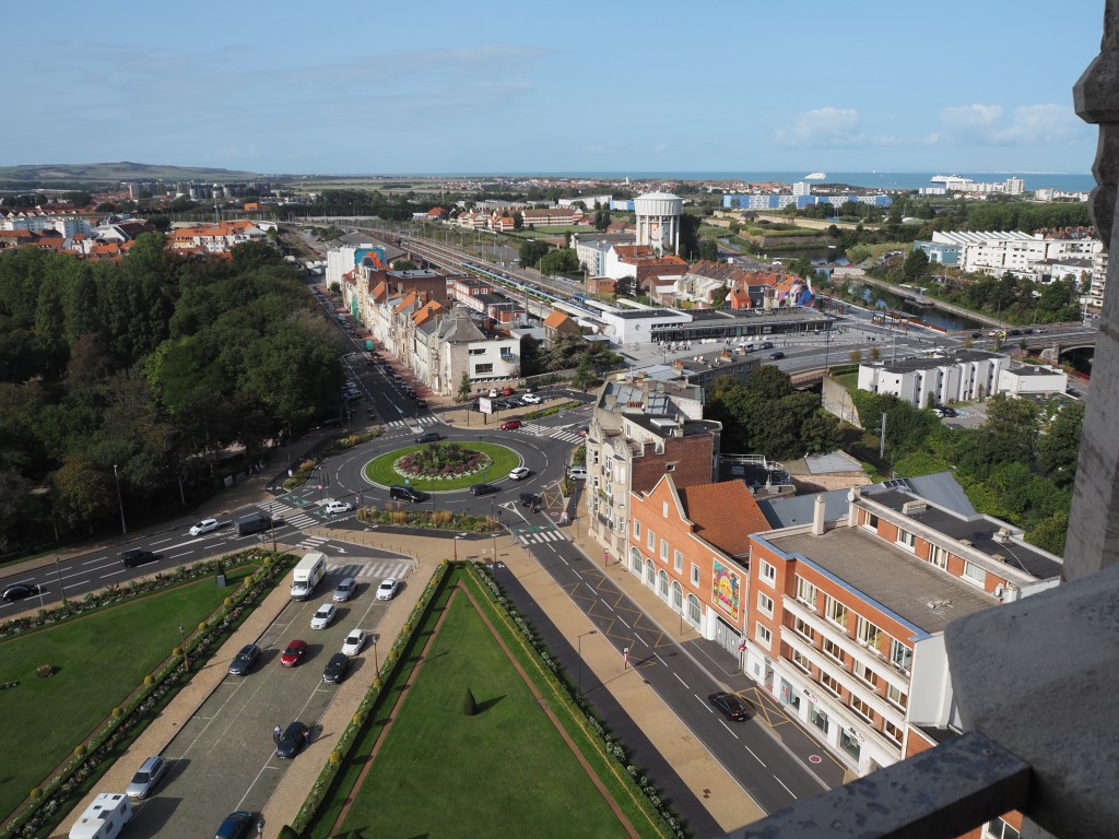 Direction Calais, que nous visitons pour la première fois. Nous découvrons la ville depuis le beffroi, à 55 m de hauteur. Les 2 villes de Saint-Pierre et Calais ont été réunies en 1885, et le beffroi est accolé à l’hôtel de ville de la nouvelle cité. La tour Saint Eloi est le seul vestige du Moyen-Âge, car la ville a été presque entièrement détruite pendant les guerres.