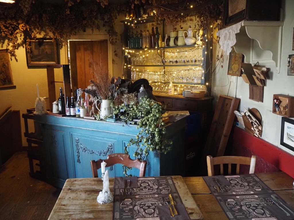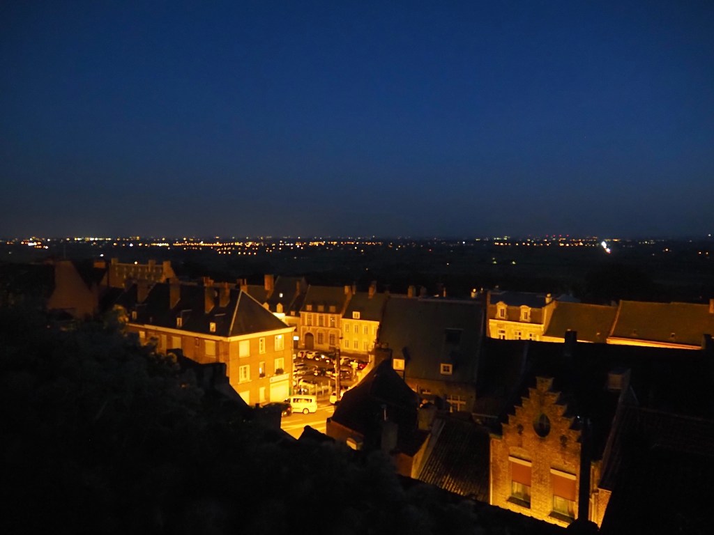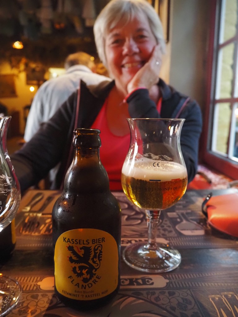 Nous traversons Dunkerque sans s’y arrêter, et, sur la route, depuis Sangatte, nous constatons effectivement le nombre impressionnant de jeunes migrants errants en attente de trouver un passeur pour l’Angleterre. Nous faisons étape à Cassel, petite ville flamande, sur la colline du château, où un parking conviendra pour la nuit. Il est à 100m d’un petit estaminet fort sympathique, l’Aet Kasteelhof, où il est difficile de choisir parmi les plats typiques flamands. Nous apprécions ! Nous sommes à 175 m d’altitude, et, d’après Le Routard, c’est l’estaminet le plus haut !