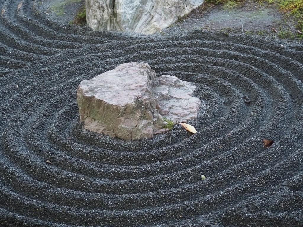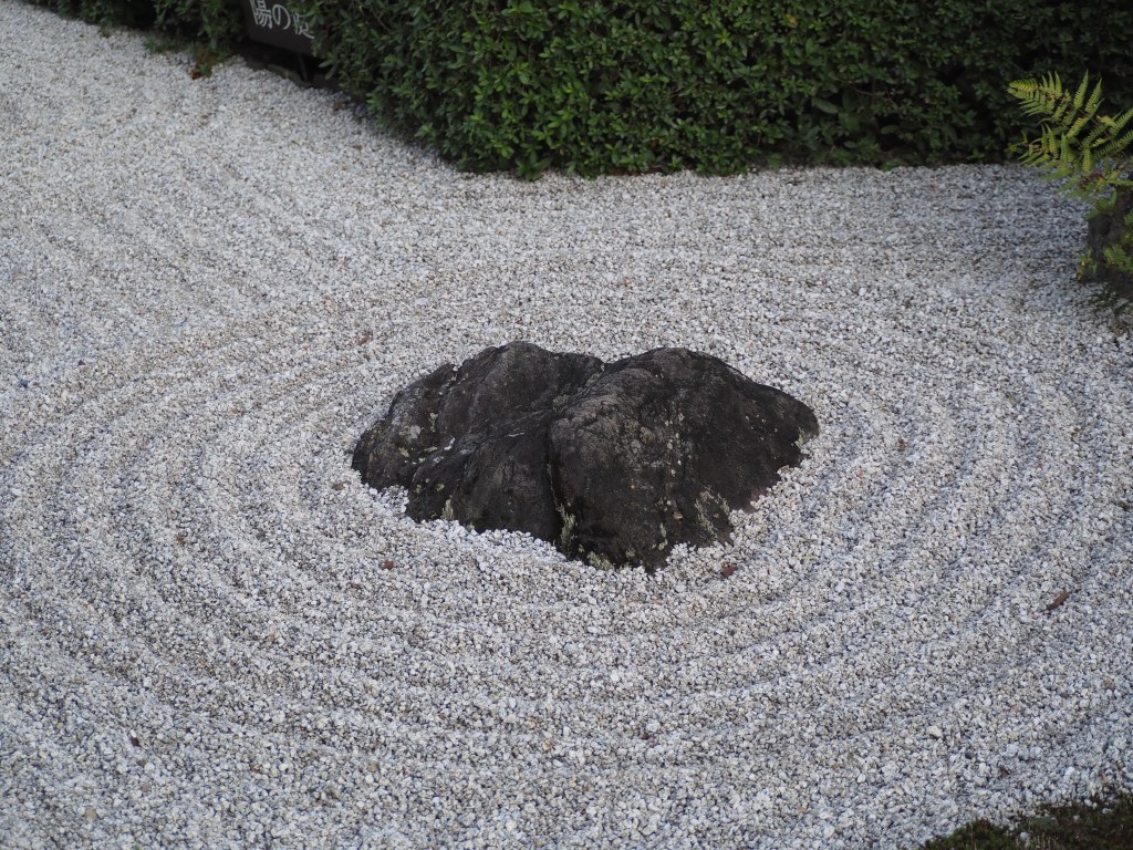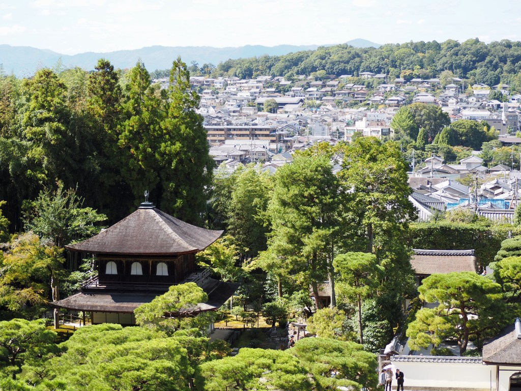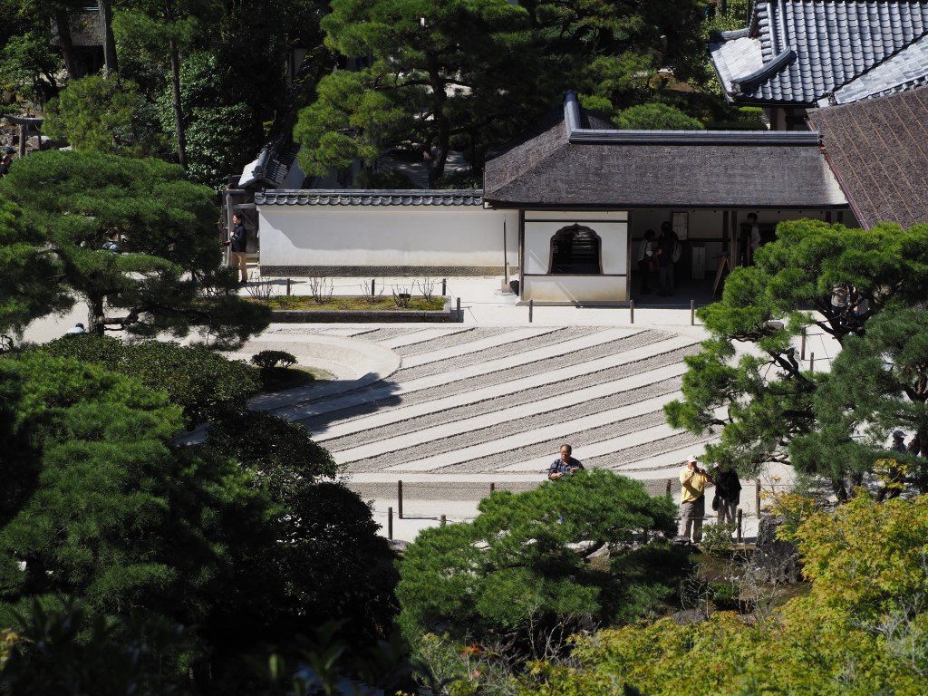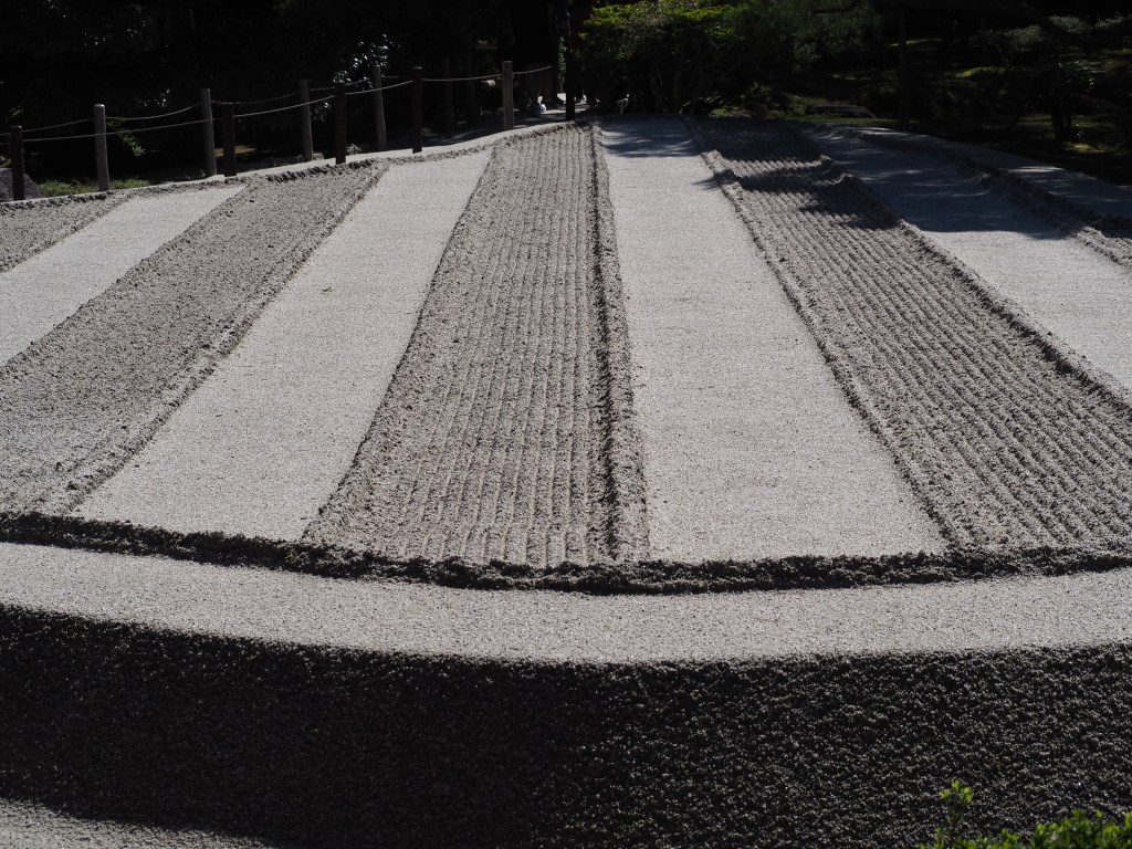 Nous visitons ensuite le Pavillon d’argent, construit au XVè siècle et surtout son jardin, avec ses 2 parties en sable : un cône tronqué pour refléter les rayons de la lune, et de longues bandes alternant surfaces lisses et striées. Le shogun s’est concentré sur la philosophie zen teintée de wabi-sabi, le raffinement dans la simplicité.