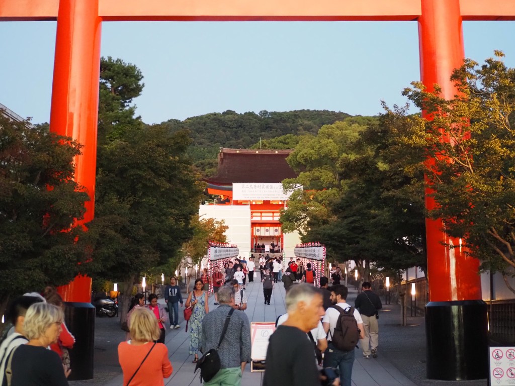 Et nous le ressentons encore plus en fin de journée, quand nous allons, seuls, au sanctuaire fushimi Inari, et ses 10000 torii rouges, issus de donations, qui se succèdent sur 4 km de long. Malheureusement, la foule, et les multiples « instagrammeurs » qui prennent la pose gâchent le lieu.