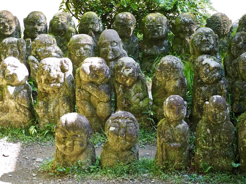 Nous nous rendons dans le quartier d’Arashiyama, qui jouit d’un bel environnement naturel, et où l’on peut s’éloigner des foules en montant de petites routes. Nous sommes surpris par le temple Otagi Nenbutsu-ji, où l’on découvre 1200 visages de pierre, coiffés de mousse.