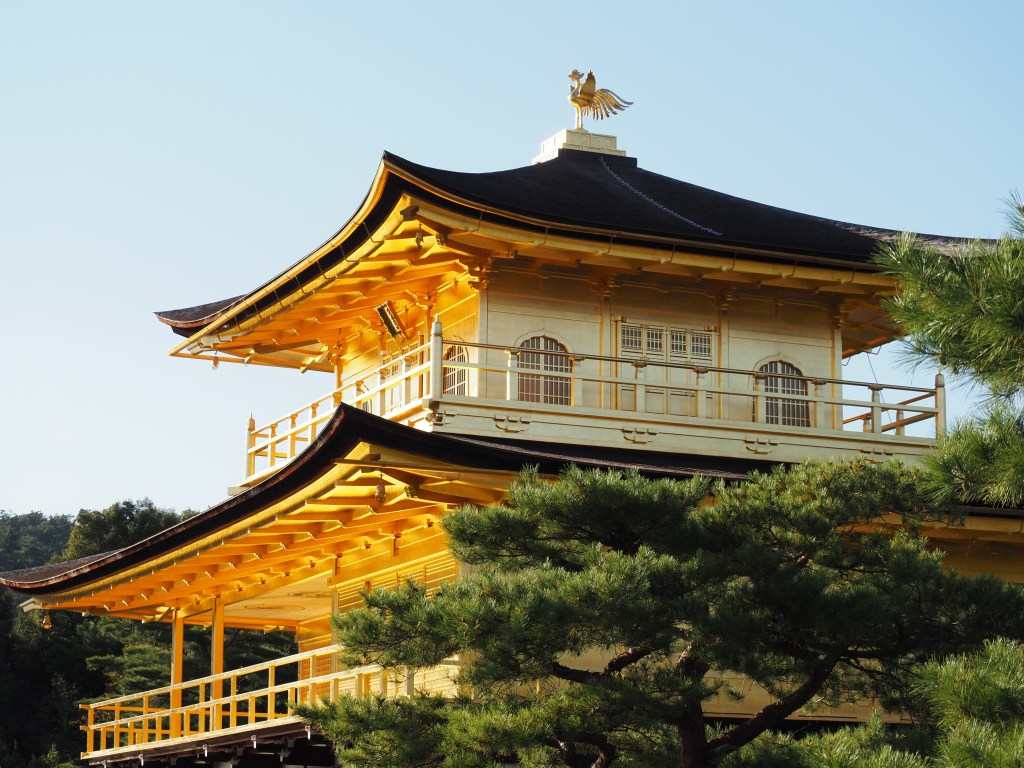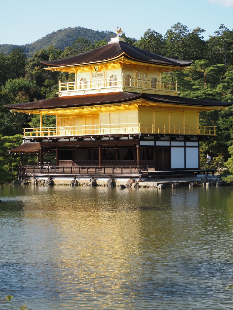 Miroitant dans les eaux d’un étang et adossé au mont Kinugasa, le pavillon d’or est classé au patrimoine mondial de l’humanité. Il est recouvert de 5 couches d’or à l’extérieur comme à l’intérieur, fruit d’une rénovation en 2020-21. Datant du 14è siècle,il fut dévoré par les flammes en 1950, et reconstruit.