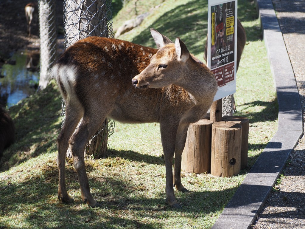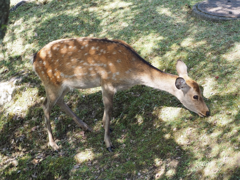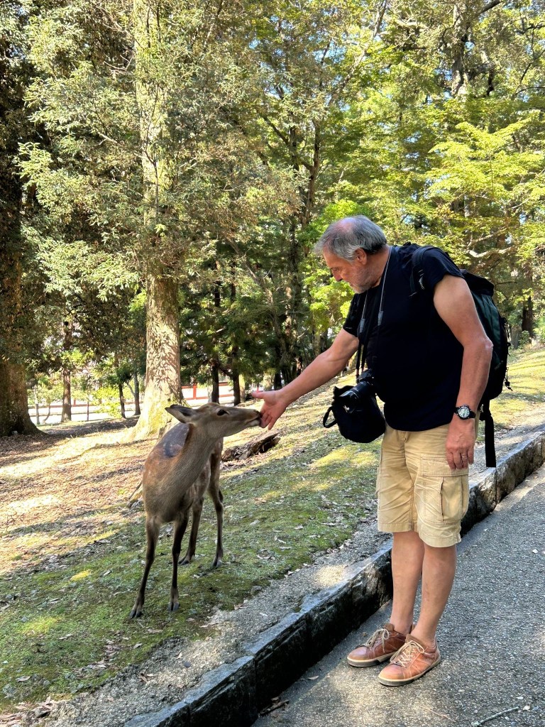 Considérés comme les messagers des dieux du sanctuaire Kasuga, les 1200 daims, ou plutôt les cerfs Sika du parc de Nara sont classés trésors nationaux . Ce sont pourtant des herbivores, mais les visiteurs du parc les nourrissent avec des biscuits, si bien qu’ils réclament et sont complètement habitués à la foule (encore !) et aux voitures.