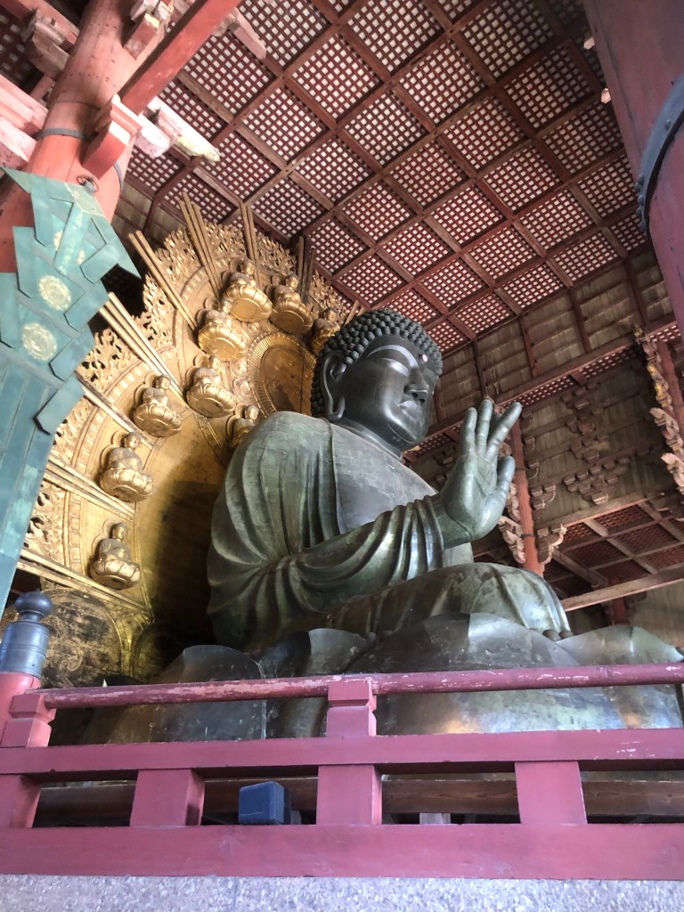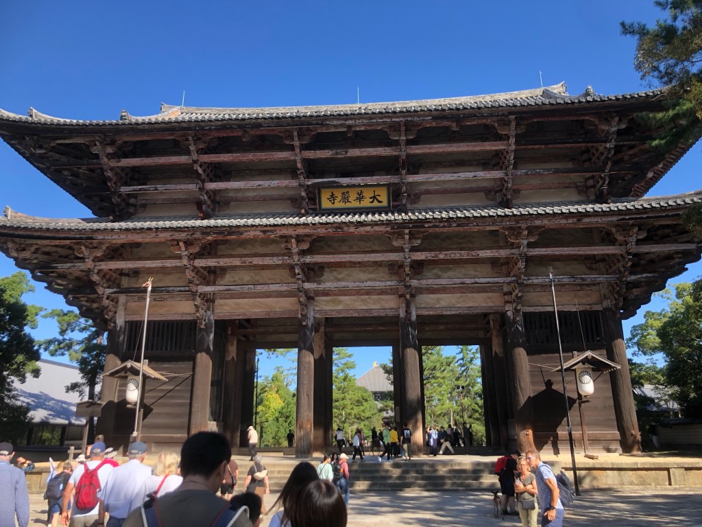 Nous visitons le temple Todai-ji, qui accueille la plus grande statue de Bouddha en bronze du monde, consacrée en 752.