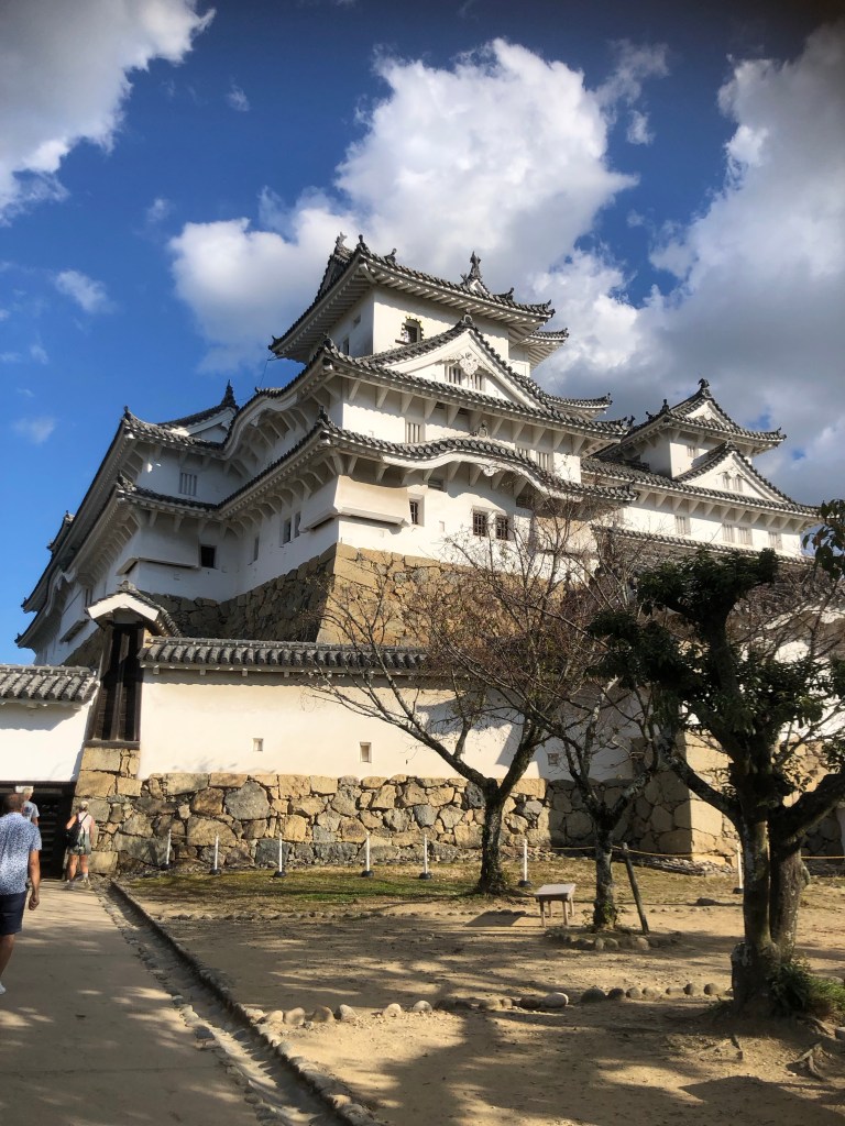 Notre étape du jour est Himeji, célèbre pour son château dit du héron blanc, inscrit au patrimoine mondial. Il date du XVIIè siècle, et a été rénové récemment. Il comprend un donjon de 7 étages, haut de 46m, que l’on gravit en file indienne par des escaliers de bois très raides, comme à Matsumoto. Rien de plus à l’intérieur qu’un bel édifice en bois. C’est surtout l’extérieur qui vaut le coup d’œil. Il est de plus entouré de plusieurs jardins