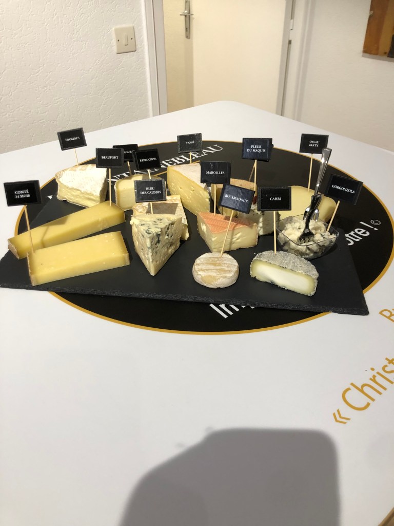 Après une bonne nuit sur l’eau, premier rendez-vous de la journée dans le centre-ville de Fontainebleau, pour un atelier fromage. Nous allons apprendre, avec Christophe, le fromager, l’histoire du fromage, les différentes familles, et surtout déguster 14 sortes de fromages, en accord avec 3 vins. Autant dire que c’est un véritable festin, terminé par une petite gourmandise : le Fontainebleau, composé d’une faisselle surmontée de crème fouettée très légèrement sucrée, que l’on peut agrémenter ou non de marmelade de fruits rouges. Nous avons passé un très bon moment.